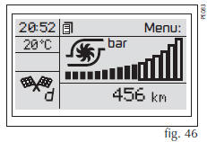Colocar a chave de ignição na posição MAR e, em seguida, o display exibirá a indicação de data fig. 45. Para algumas versões, serão visualizadas, em seguida, as telas respectivas da função DNA fig. 46 (ver "Função DNA", no presente capítulo), desde que o display esteja configurado para exibi-las. Para configurá-las, ver instrução nas páginas seguintes no menu do My Car (Primeira pág.).