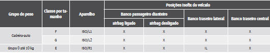Para saber a compatibilidade dos sistemas "ISOFIX" no veículo, consulte a tabela seguinte.