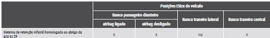 X:Posição não válida para sistemas de retenção infantil homologados ao abrigo da ECE R129.